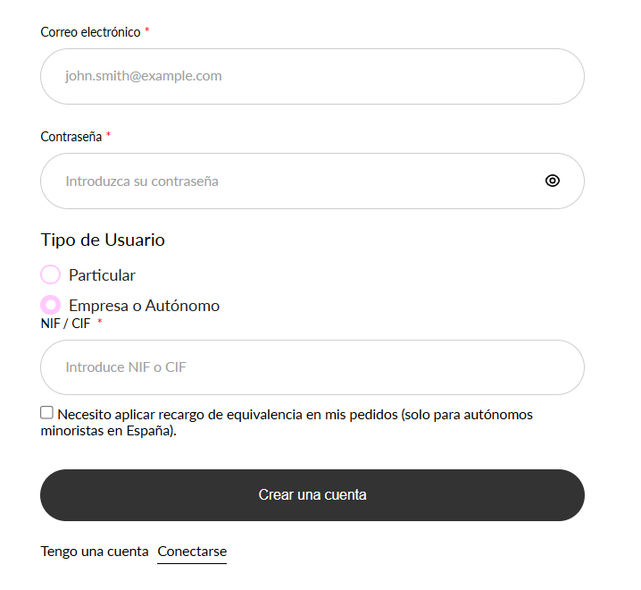 | Tienda B2B con validación manual de empresas | 240 € – 320 € |