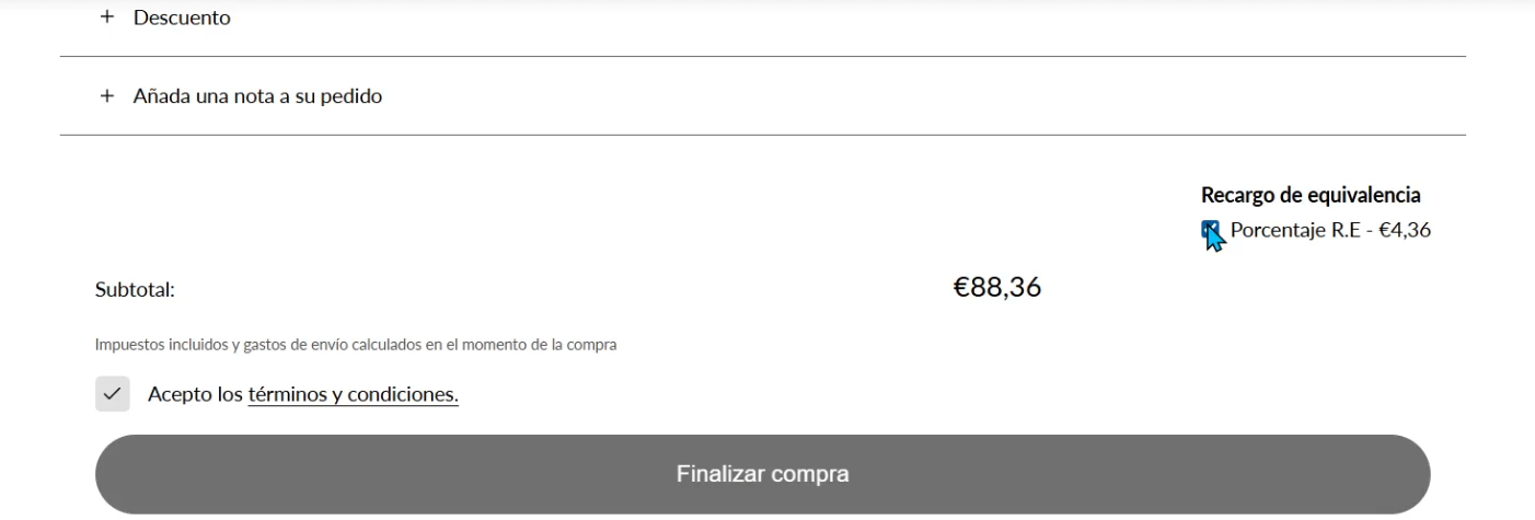 Shopify no permite gestionar el recargo de equivalencia de forma nativa.